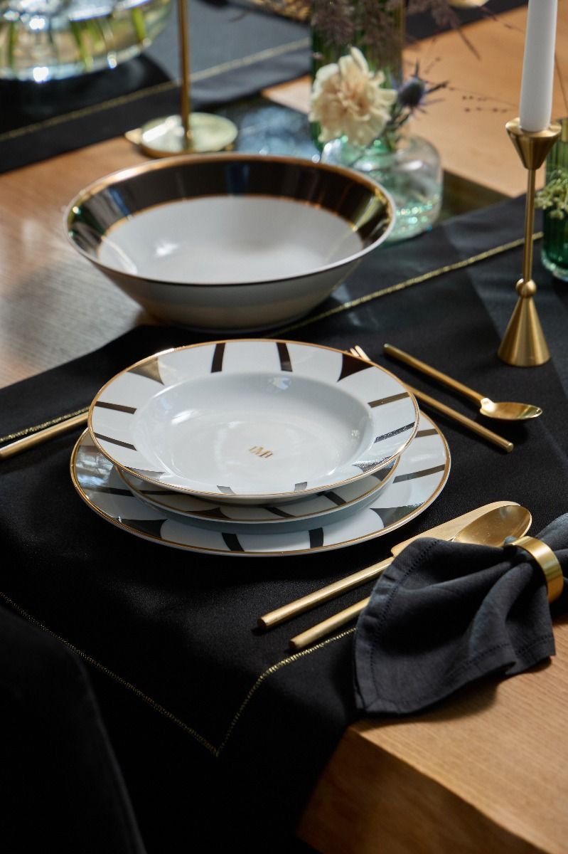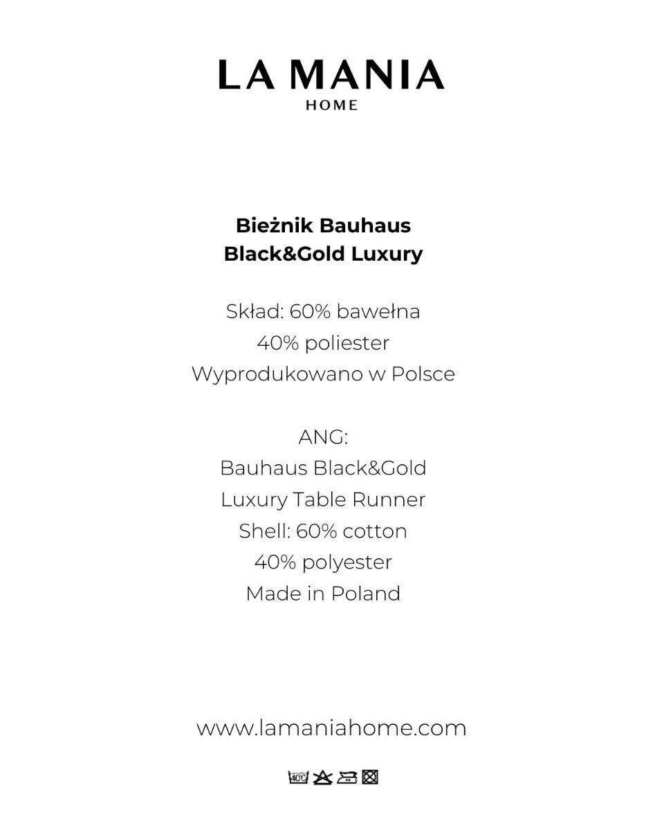 Bieżnik Bauhaus w kolorze czerni i złota to wspaniały dodatek, dzięki któremu każdy wspólny posiłek będzie prezentować się jeszcze lepiej. Produkt zachwyca starannością wykonania i najlepszą jakością użytych materiałów.