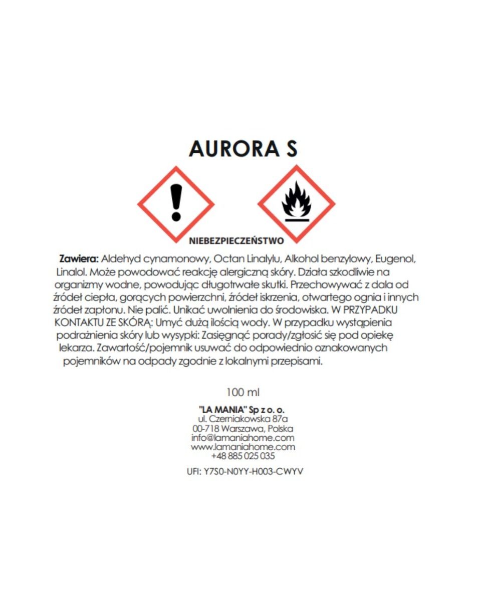 Dyfuzor Aurora to mieszanka otulającej wanilii, aromatycznego cynamonu, piernika i goździków w towarzystwie brzoskwini i cytrusów.
