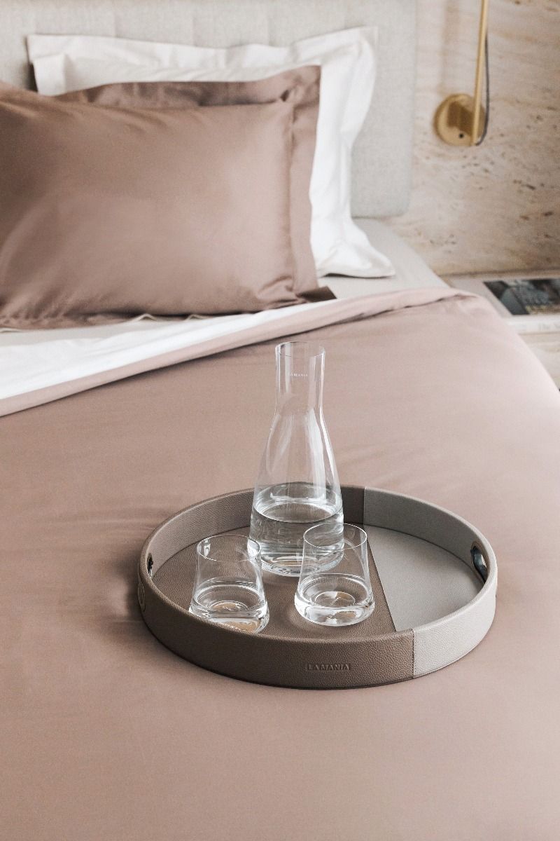 Jej delikatnie zwężająca się forma nawiązuje do motywu kwiatu będącego inspiracją całej kolekcji. Wykonana z bezołowiowego szkła kryształowego zachwyca przejrzystością, delikatnym połyskiem i wyjątkową lekkością. Kształt karafki nie tylko pięknie eksponuje zawartość, ale także umożliwia wygodne serwowanie napojów. Subtelne logo LA MANIA, umieszczone na powierzchni szkła, podkreśla minimalistyczny charakter projektu i wpisuje się w estetykę marki.
