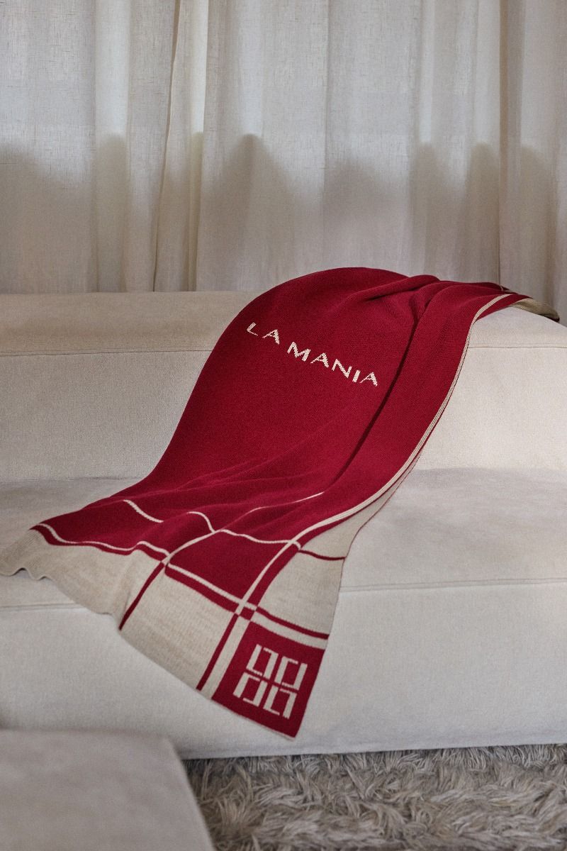 Koc Rouge Mania to wyrazisty wzór graficznych linii z monogramem LL. Głęboka czerwień połączona z beżem sprawia, że świetnie prezentuje się przez cały rok. Wykonany ze 100% miękkiej bawełnianej dzianiny.