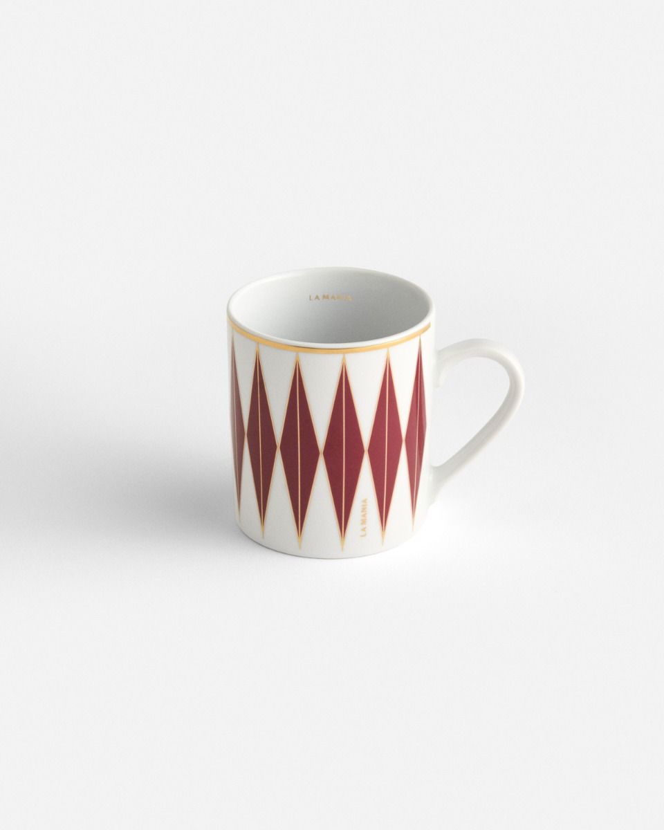 Kubek barolo to motyw bordowych rombów z delikatnym złotym wykończeniem inspirowany jest świątecznym ornamentem. Idealnie pasuje do kolekcji Ligne barolo.