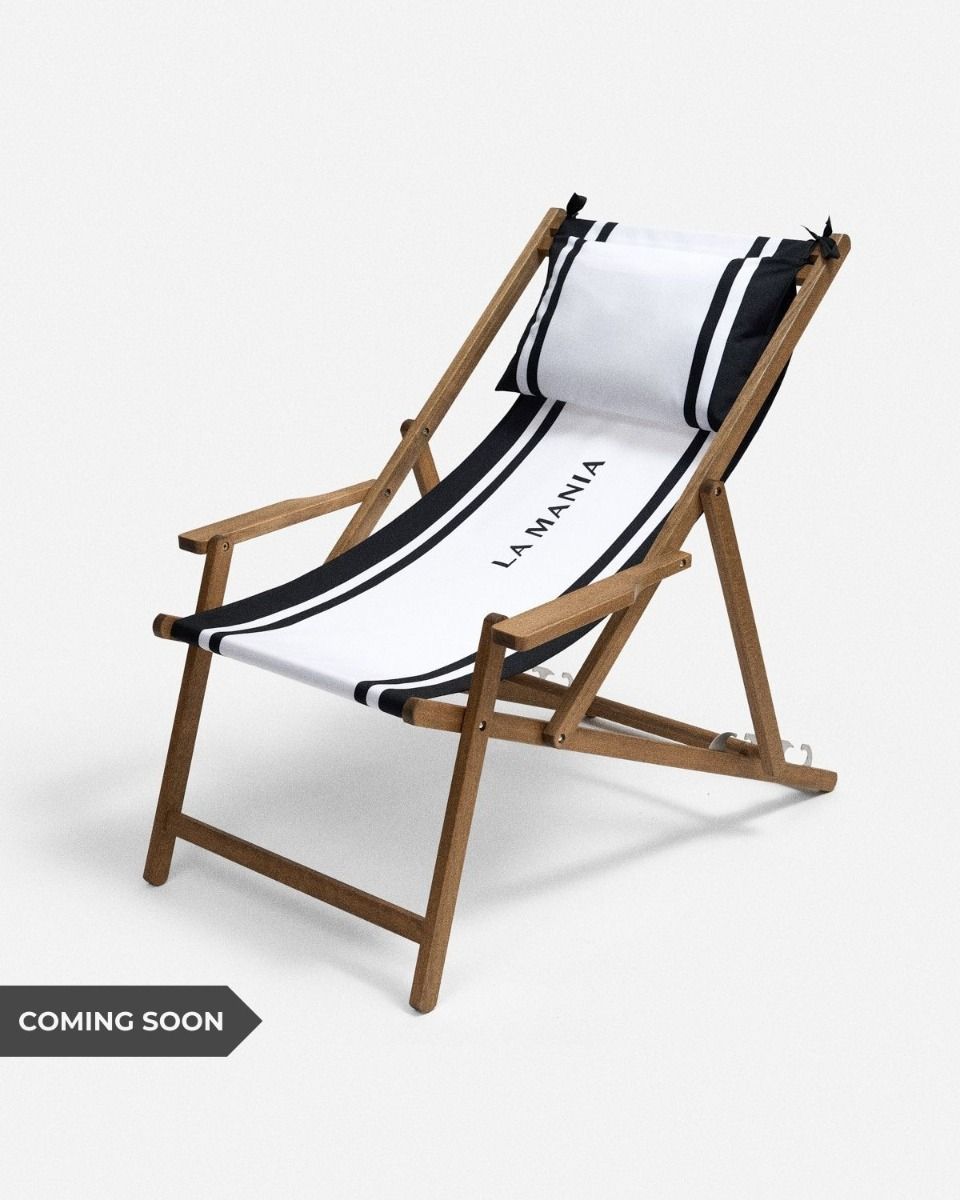 Leżak Lumia został zaprojektowany z myślą o wygodnym wypoczynku na świeżym powietrzu. Sprawdzi się idealnie latem - na tarasie, w ogrodzie lub przy basenie, wszędzie tam, gdzie liczy się komfort i estetyka wykonania. Projekt oparty jest na wyrazistym kontraście czerni i bieli, podkreślonym geometrycznym układem pasów. Minimalistyczna kompozycja nadaje całości nowoczesny, graficzny charakter, a subtelnie wkomponowane logo La Mania stanowi akcent identyfikujący markę.