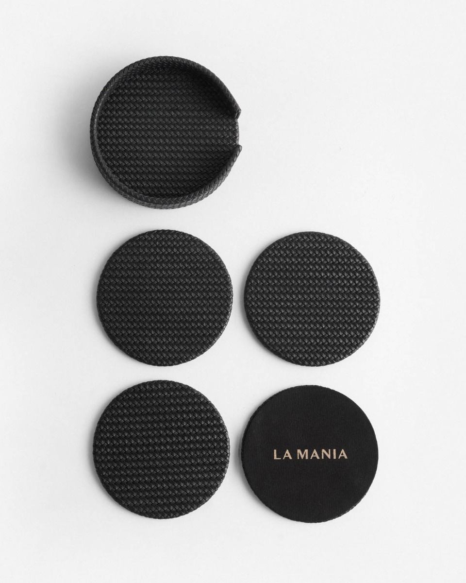 Wykonane zostały z wysokiej jakości eko skóry w formie drobnej plecionki. Zamknięte zostały w etui utrzymanym w tej samej estetyce.