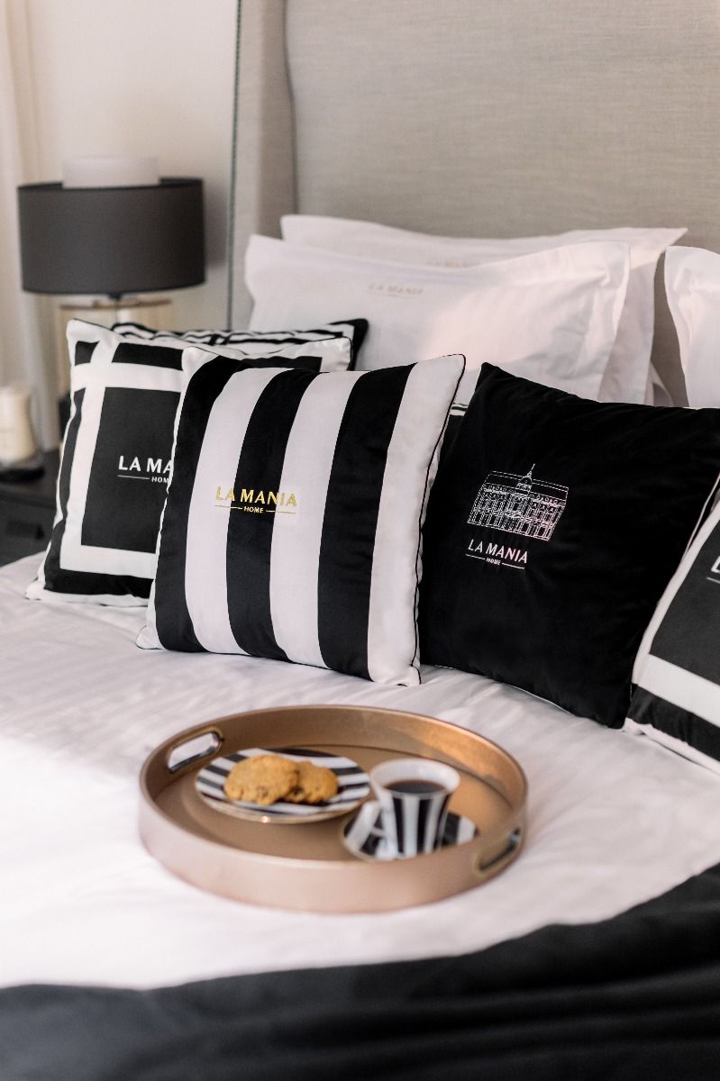Poduszka Grand Manor to zachwycająca propozycja i część większej kolekcji, która otwiera przed Tobą drzwi do świata architektury i sztuki. Rewelacyjnie komponuje się z różnorodnymi aranżacjami wnętrz i nadaje im wyrafinowanego uroku. Jej klasyczny, a zarazem nowoczesny design wzbogaci Twój salon, sypialnię lub gabinet. Czarna poduszka z delikatną białą lamówką posiada misternie haftowany motyw inspirowany XIX-wiecznymi budynkami.