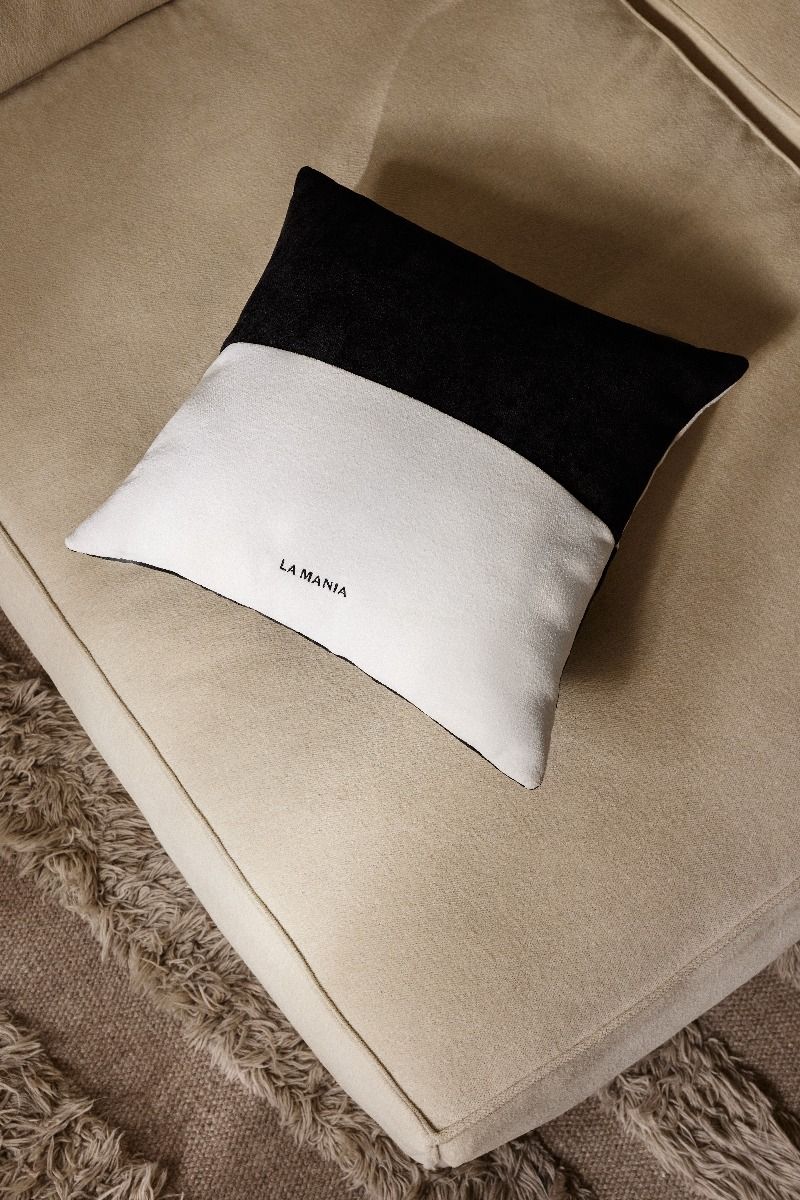 Poduszka Luméra to stylowy akcent, który doskonale odnajdzie się zarówno w nowoczesnych, jak i klasycznych aranżacjach. Kontrastowa kolorystyka bieli i czerni została dopełniona logo La Mania umieszczonym centralnie w dolnej części, co podkreśla jej nowoczesny i minimalistyczny charakter.