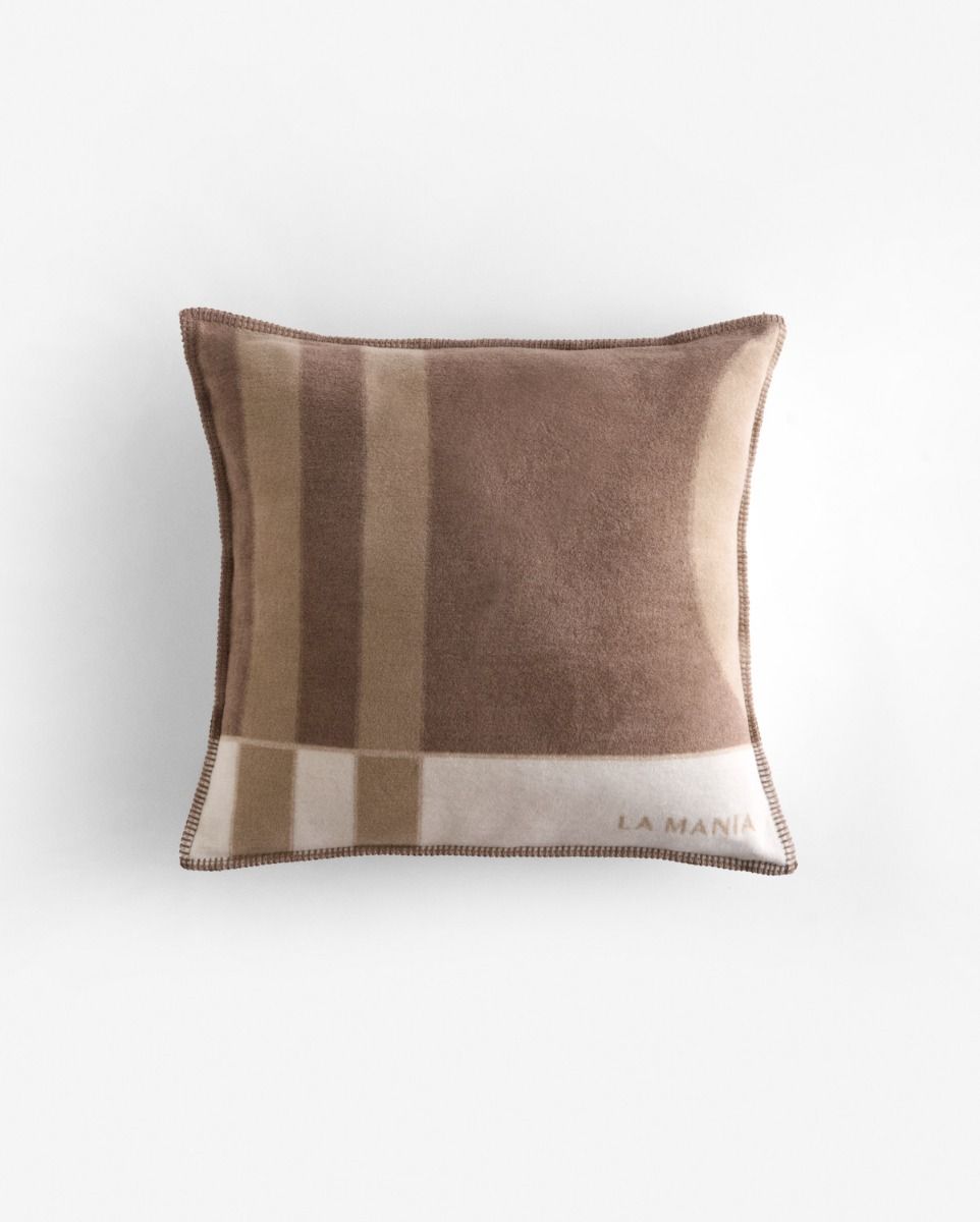 Poduszka Pellure II to projekt, w którym geometryczne formy układają się w mozaikowy wzór inspirowany techniką forniru.