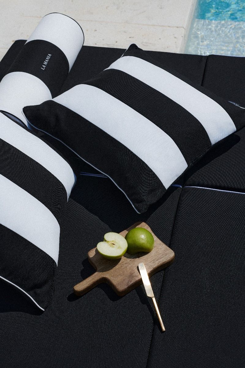 Poduszka ogrodowa Saint Tropez Black to ponadczasowy element dekoracyjny, który wprowadzi powiew elegancji do Twojej strefy zewętrznej. Sygnowana logo La Mania Home oraz ikonicznymi biało-czarnymi pasami będzie nie tylko praktycznym, ale również stylowym akcentem letniej aranżacji. Wykonana z trwałej tkaniny, odpornej na zmienne warunki atmosferyczne oraz posiadająca zapięcie na suwak ułatwiające utrzymanie czystości. Stanowi idealne dopełnienie pozostałych produktów z kolekcji Outdoor, tworząc spójny i harmonijny wystrój. Wyprodukowana w Polsce.