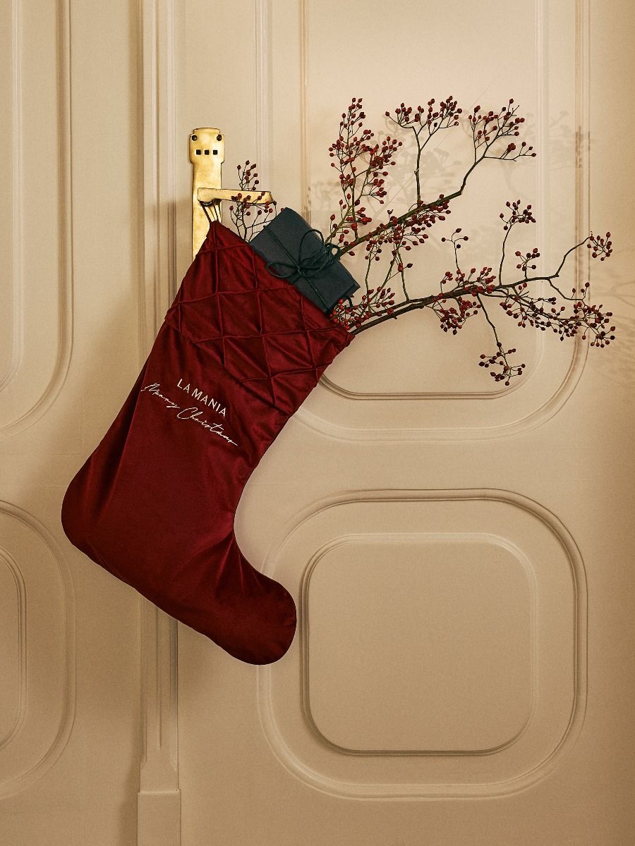 Dzięki skórzanej zawieszce możesz umieścić skarpetę w dowolnym miejscu i wykorzystać jej praktyczne zastosowanie. Zalecamy pranie profesjonalne.