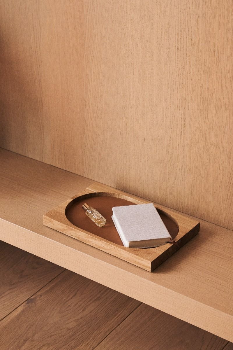 Taca Trave z jasnego drewna dębowego to harmonijne zestawienie klasycznej formy z subtelnym kontrastem faktur.