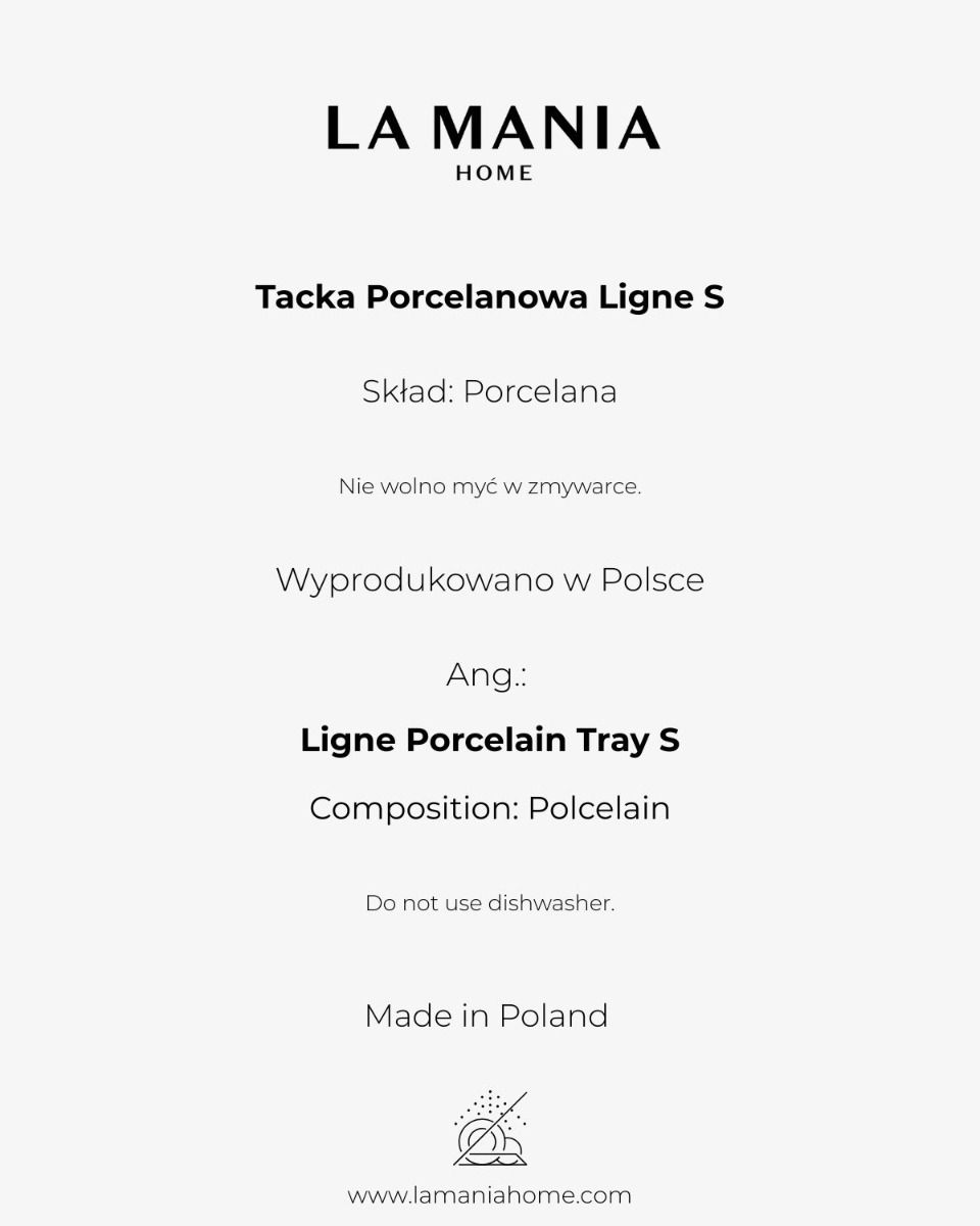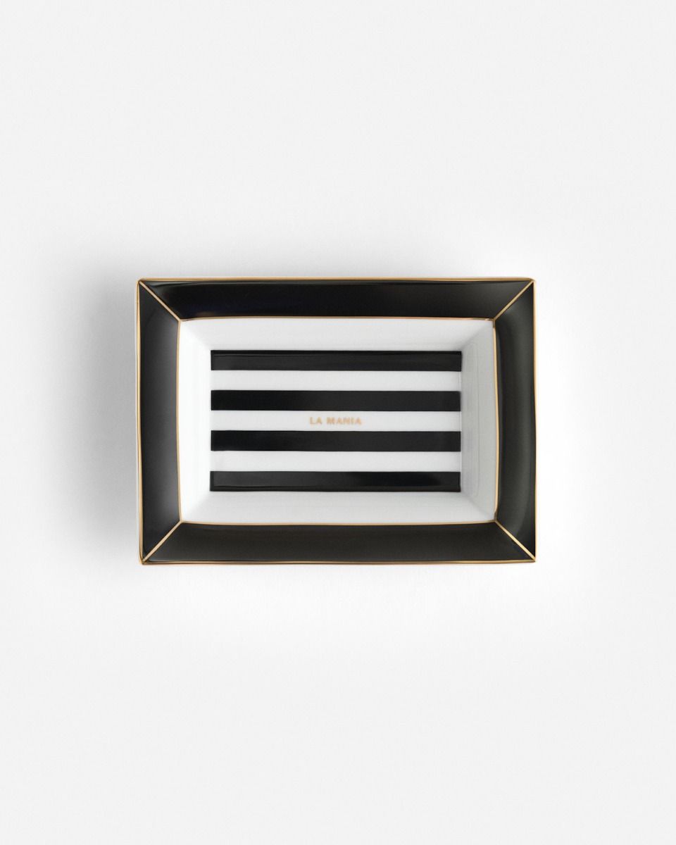 Tacka porcelanowa Ligne S to połączenie minimalistycznej formy i wyrazistego wzoru w pasy, inspirowanego kultową serią Stripes. Klasyczne połączenie czerni i bieli, złoty rant i subtelne logo La Mania, nadają mu ponadczasowego charakteru. Nie zaleca się mycia w zmywarce. Wyprodukowano w Polsce. Dostepne w dwóch rozmiarach.